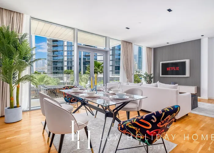 O Lux The Bluewaters Island Suite 2 Dubai está situado no bairro Praia e Costa de Dubai a aproximadamente 6 km do Parque Aquático Aquaventure, e tem vista para pátio interior. Os hóspedes podem utilizar Wi-Fi para fins profissionais ou de lazer.